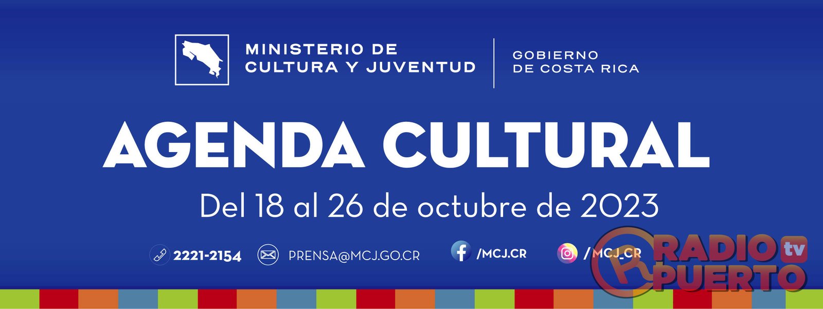 ☼ Período de postulación de Premios Nacionales de Cultura 2023. El MCJ tiene actualmente abierto el período de postulación de candidatos para los Premios Nacionales de Cultura 2023, en sus múltiples disciplinas. Estos premios son galardones que otorga anualmente el Estado costarricense para reconocer la trayectoria de trabajo, esfuerzo, tenacidad y excelencia a la que han llegado personas, grupos artístico-culturales, intérpretes populares, así como otras organizaciones de base comunal, en diferentes disciplinas culturales. Cierre de recepción de postulaciones: 30 de noviembre de 2023. Puede acceder a los formularios de postulación en el siguiente enlace: https://tinyurl.com/ms9f9cnt
