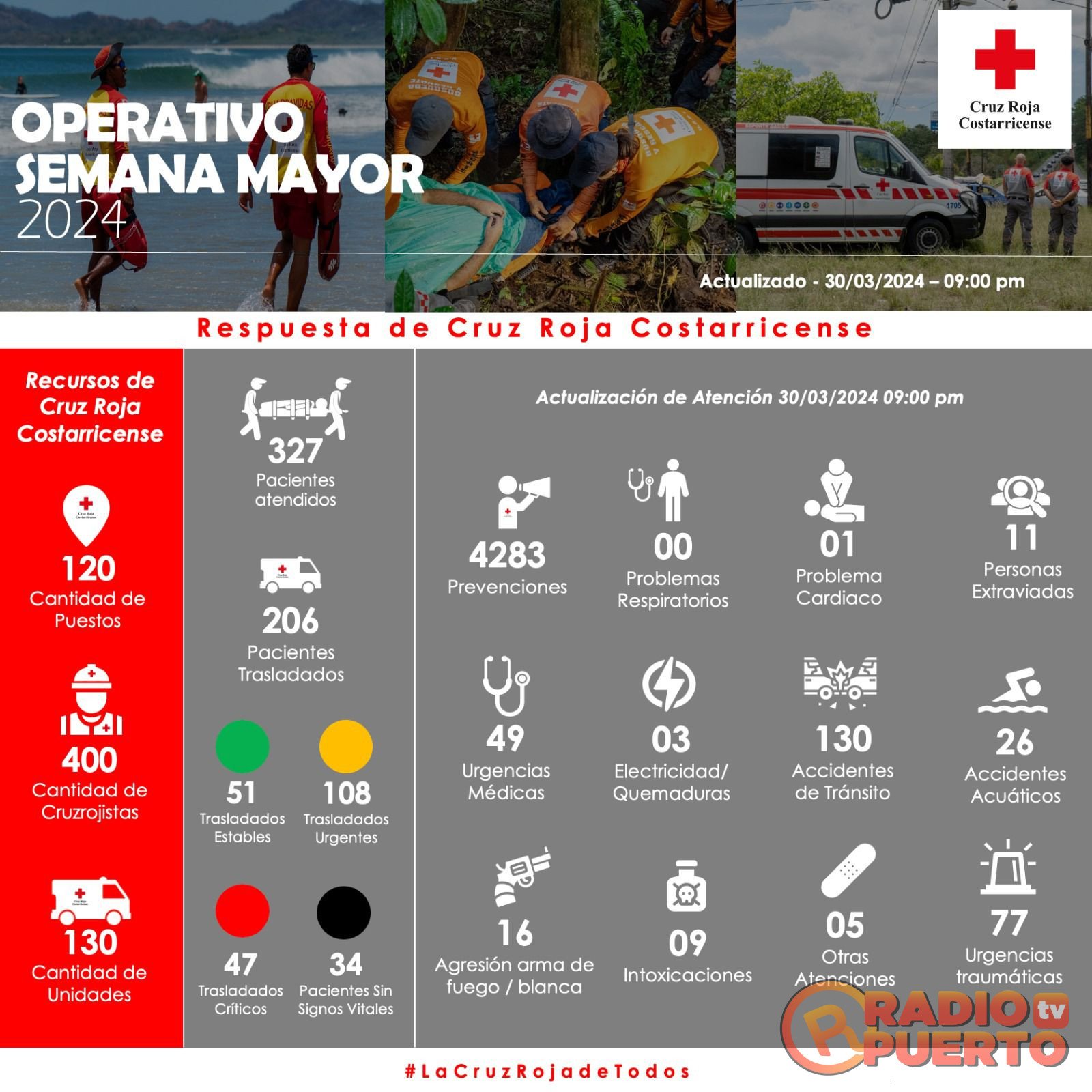327 personas ha requerido atención por parte de nuestros cruzrojistas y 206 personas ha sido traslados a los diferentes centros médicos.