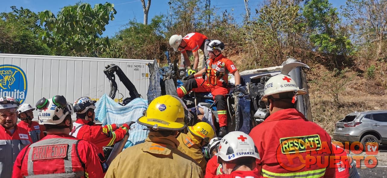En estos momentos la Cruz Roja Costarricense atiende la colisión de dos vehículos pesados contra un vehículo liviano en Puntarenas, recta de Naranjito (Ruta 1) por el sector de Barranca.