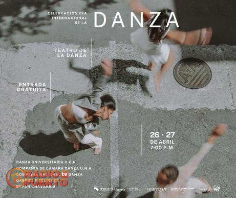 ☼ Celebración del Día Internacional de la Danza. Presentaciones a cargo de Danza Universitaria, con un extracto de la obra “Recóndita” de Eduardo Guerra; la Compañía Nacional de Danza, con la obra “Ensayo sobre la Urgencia”, coreografiada por Grei Quezac, director de la Compañía; Compañía de Cámara Danza UNA, extracto de la obra “Espacio Cósmico”, colaboración interdisciplinaria junto a Mario Vircha, director de la Compañía. Se contará con presentaciones del sector independiente a cargo de Gabriel Rodríguez con su obra “INEFABLE” y Bryan Chavarría con “Ejecución de una Gallina Chiricana”. El 26 y 27, 7 p. m., Teatro de la Danza, Centro Nacional de la Cultura. Entrada gratuita.